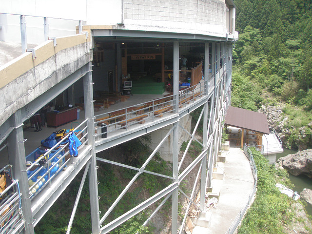 Lets start from the base of kenmi rafting, we can see the BBQ spot on the right below.... a red tiny roof on the top, biside the river .........