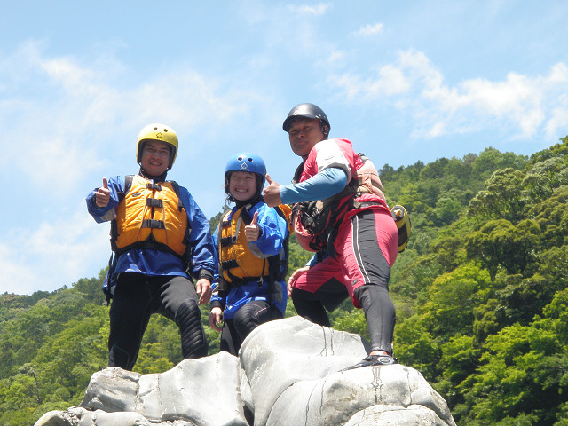 途中、ボディーラフティングを味わった、男3人は、激流ポイントで落ちなくて引っくり返らないで良かったと、言ってましたがね(笑)